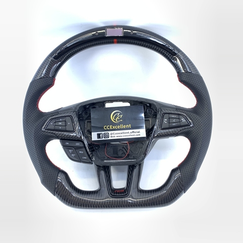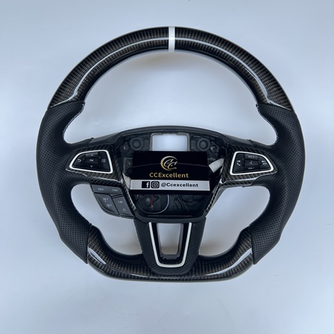 พวงมาลัยคาร์บอนไฟเบอร์ CCexcellent สำหรับฟอร์ดโฟกัส MK3ดีไซน์แบบเจาะรูหนังสีขาว