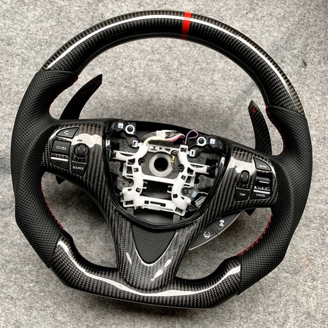 พวงมาลัยคาร์บอนไฟเบอร์สำหรับ Acura 2020 TLX พร้อมแถบสีแดงหนังแบบมีรูพรุนตัวเปลี่ยนเกียร์คาร์บอน